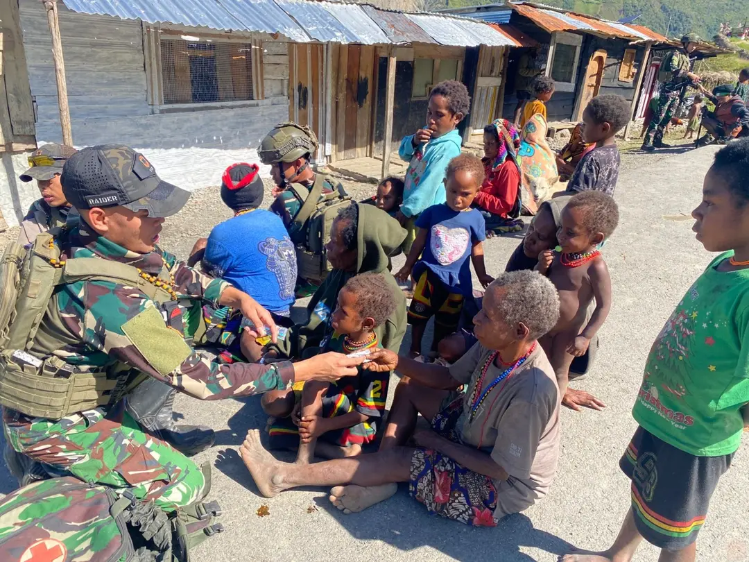 Papua,REDAKSI17.COM – Personel TNI dari Tim Kesehatan Pos Kalome Satgas Yonif 112/DJ menggelar pelayanan kesehatan gratis dengan metode keliling bagi warga Kampung Kalome Distrik Tinggi Nambut Kabupaten Puncak Jaya Provinsi Papua Tengah, Minggu (25/1/2026).