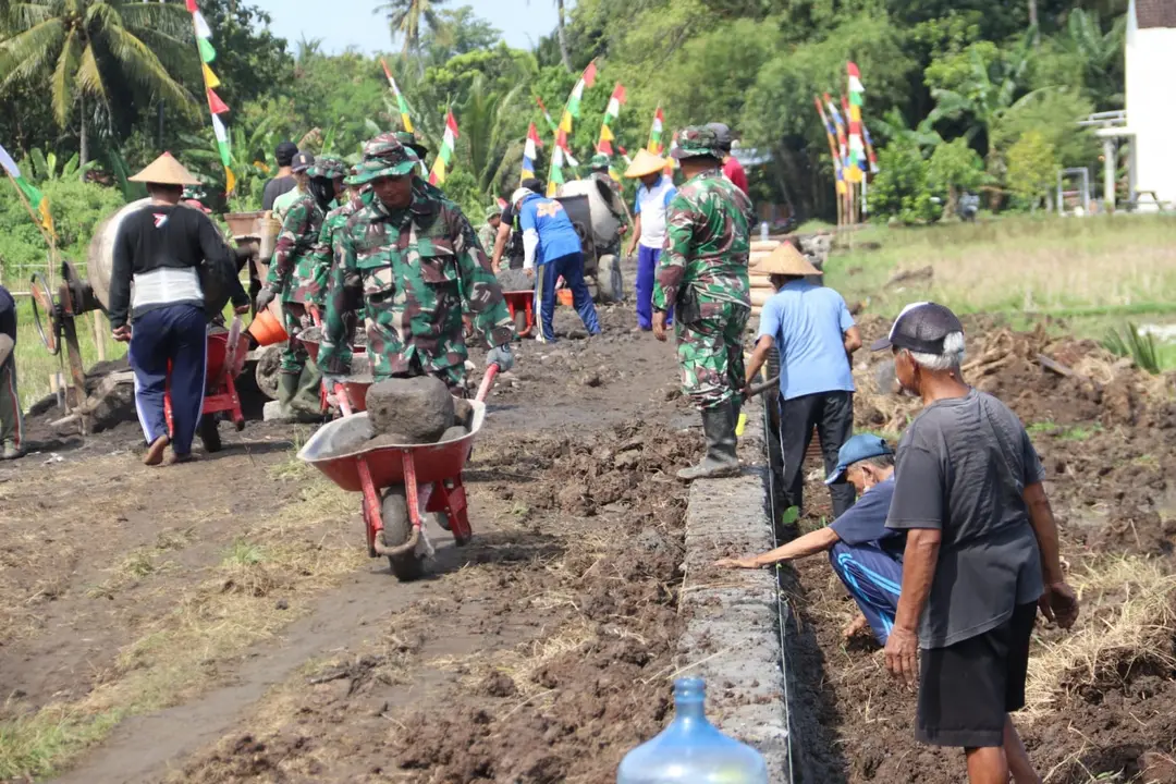 Justru di cuaca panas tersebut, semangat kebersamaan antara TNI dan warga semakin terasa kuat. Sejak pagi hari, anggota Satgas TMMD bersama masyarakat sudah turun langsung ke lokasi pembangunan.