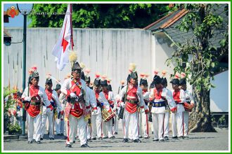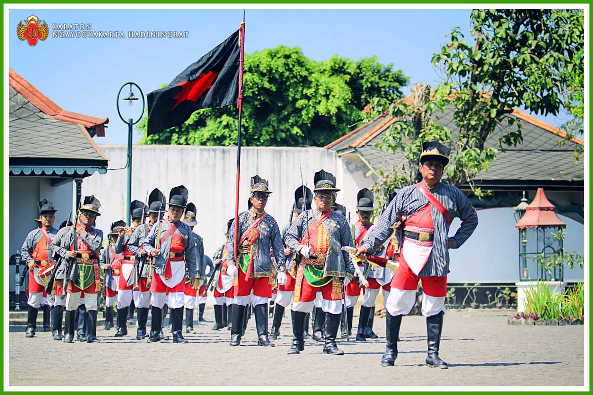 Senjata yang digunakan oleh anggota Bregada Prajurit Patangpuluh adalah tombak (waos) dan senapan. Tombak pusakanya bernama Kanjeng Kiai Trisula dengan bentuk ujung (dapur) yang dinamakan Daramanggala/ Trisula Carangsoka. Pada saat berjalan cepat (mars), Bregada Prajurit Patangpuluh diiringi dengan Gendhing Bulu-Bulu. Apabila berjalan lambat (lampah macak) akan diiringi dengan Gendhing Mars Gendera.