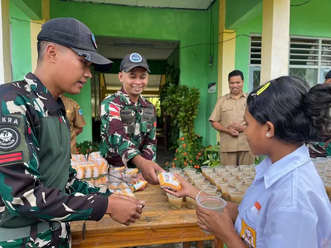 TTU,REDAKSI17.COM – Satgas Pamtas RI-RDTL Sektor Barat Yonarhanud 2 Kostrad Pos Haumeniana melaksanakan kegiatan berbagi bubur kacang hijau di SMPN Satap Oetulu, Desa Oetulu, Kec. Musi, Kab. TTU, Selasa (03/02).