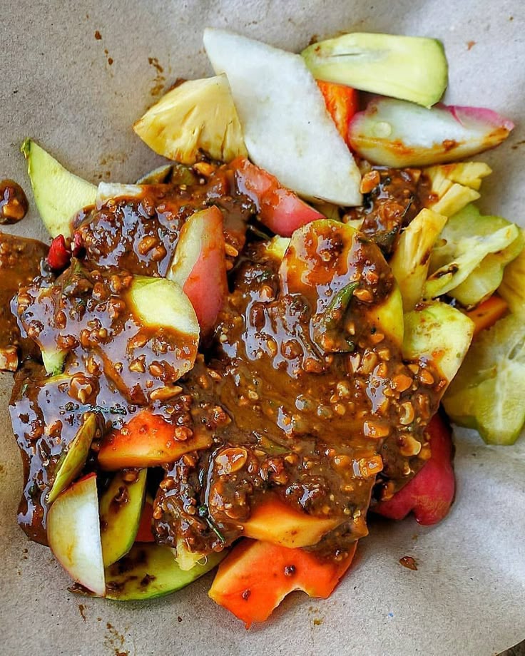 Rujak adalah camilan sehat yang terdiri dari beragam buah-buahan. Beberapa jenis buah yang umum terdapat di dalam camilan sehat ini adalah pepaya, nanas, mangga muda, bengkuang, dan jambu air.