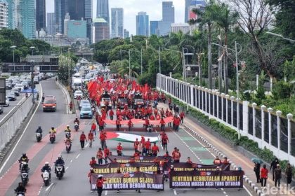 Foto: Massa buruh menggelar aksi unjuk rasa di depan Gedung DPR RI, Jalan Gatot Subroto, Jakarta Pusat hari ini. Massa menyampaikan aspirasi kenaikan upah buruh. (Taufiq S/detikcom) Jakarta,REDAKSI17....
