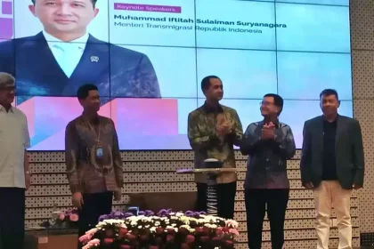 Menteri Transmigrasi Muhammad Iftitah Sulaiman Suryanagara dalam Forum Dewan Guru Besar Indonesia bertajuk “Menciptakan Pertumbuhan Ekonomi Baru” yang dilaksanakan di Institut Teknologi Se...