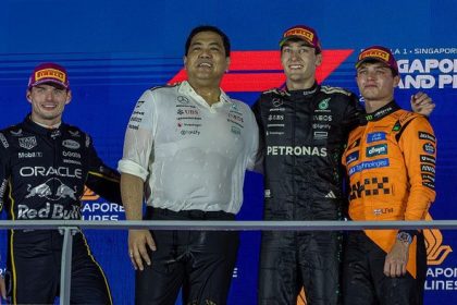 Russell (kedua dari kanan) bersama Norris (kanan), Verstappen (kiri), dan CEO Petronas Tengku Muhammad Taufik. Foto: NurPhoto via Getty Images/NurPhoto Marina Bay,REDAKSI17.COM – Persaingan gela...