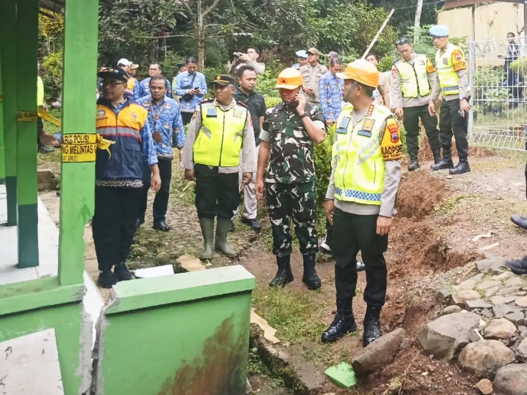 Dandim 0701/Banyumas Bersama Forkompimda Banyumas Tinjau Lokasi Pengungsian Warga Terdampak Tanah Bergerak di Desa Ketanda