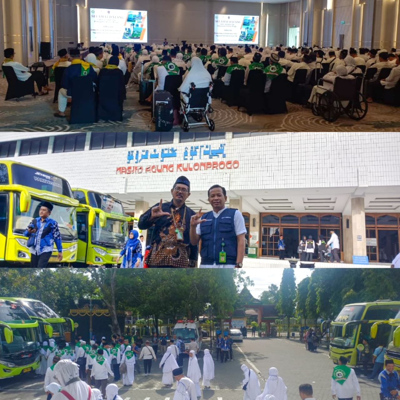 Rangkaian simulasi dimulai dengan berkumpulnya jemaah haji di Masjid Agung Kabupaten Kulon Progo, dilanjutkan dengan upacara pelepasan jemaah dan perjalanan menuju Hotel Novotel YIA sebagai lokasi simulasi penerimaan embarkasi. Pada tahapan ini dilakukan simulasi penerimaan jemaah, pemeriksaan kesehatan melalui layanan One Stop Service (OSS), penempatan jemaah di kamar hotel, serta pembinaan ketua regu dan ketua rombongan sebagai bagian dari kesiapan jemaah sebelum keberangkatan.