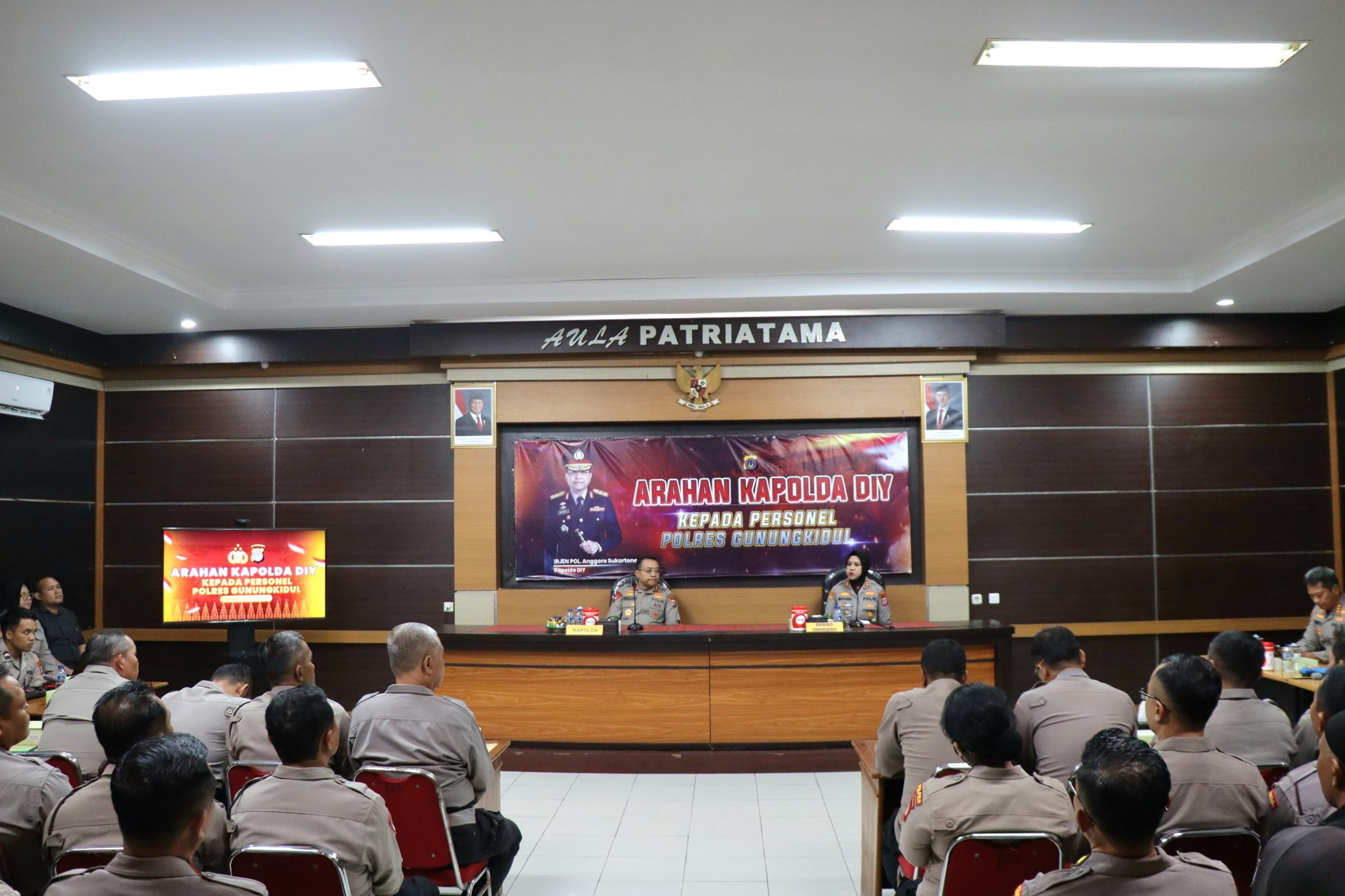 Gunungkidul,REDAKSI17.COM – Kapolda DIY Irjen.Pol Anggoro Sukartono, S.I.K, didampingi PJU Polda DIY diantaranya oleh Dansat Brimob Polda DIY, Dir Samapta, Kabid Propam, Dir Intel dan Dir Lantas Polda DIY, memberikan arahan kepada perwakilan personel Polres Gunungkidul, hadir AKBP Miharni Hanapi, S.I.K., M.M, Kapolres Gunungkidul, Jajaran PJU dan Kapolsek jajaran di Aula Patriatama Polres Gunungkidul, Selasa, 2 Desember 2025.