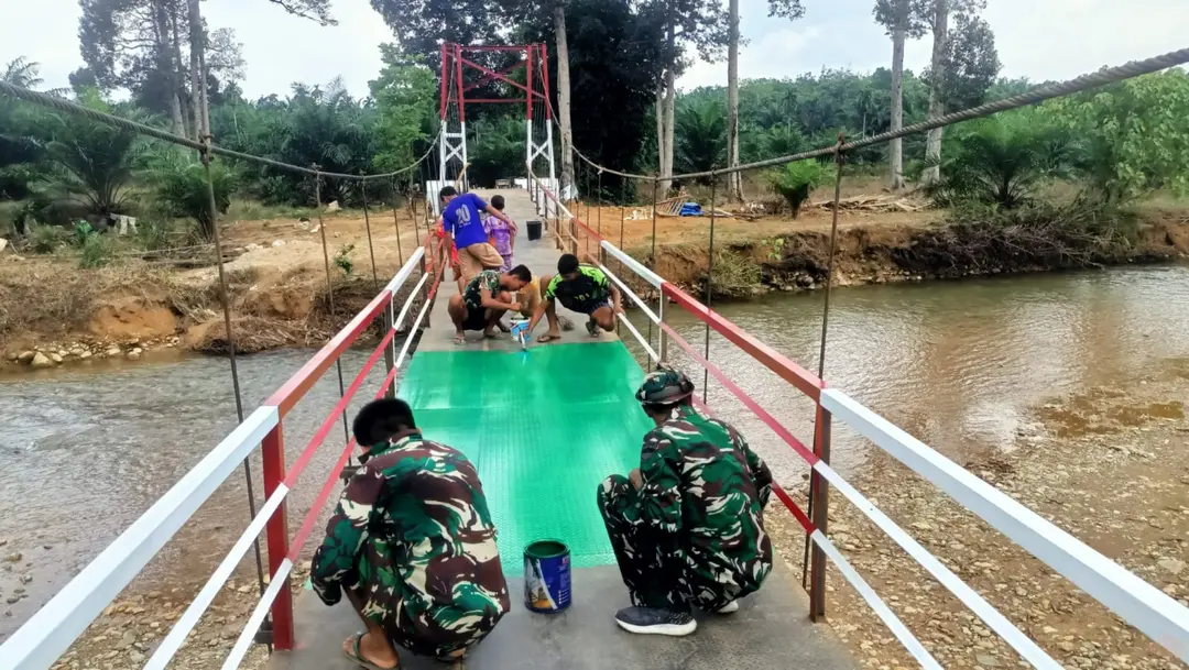Madina,REDAKSI17.COM – Kodim 0212/Tapanuli Selatan merampungkan pembangunan jembatan gantung di Aek Sale Baru, Desa Sale Baru, Kecamatan Muara Batang Gadis, Kabupaten Mandailing Natal (Madina), Selasa (10/3/2026). Jembatan sepanjang 55 meter dengan lebar 1,6 meter tersebut dibangun untuk mempermudah akses masyarakat yang selama ini harus menyeberangi sungai saat keluar masuk kampung.