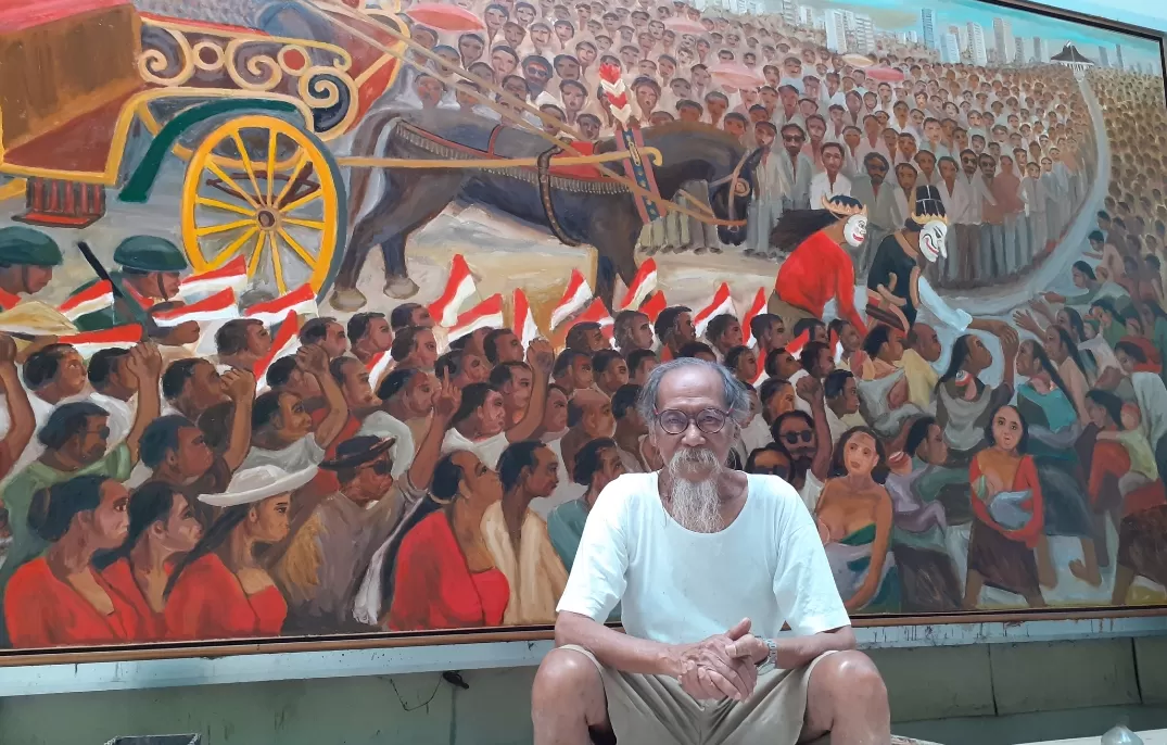 Djoko Pekik di depan karyanya. (Meitika Candra Lantiva/Radar Jogja)