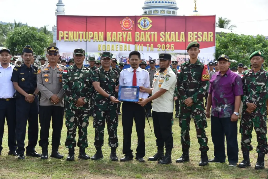 Upacara dipimpin oleh Aster Dankodaeral XII, Kolonel Marinir Janrisa Romy Ulahayanan, dan dihadiri oleh sekitar 150 peserta dari unsur TNI, Polri, pemerintah daerah, serta masyarakat setempat. Dalam laporannya, pelaksanaan Karya Bakti Skala Besar Kodaeral XII Tahun 2025 telah tuntas seratus persen dengan hasil pembangunan fisik dan nonfisik yang memberikan manfaat langsung bagi masyarakat pesisir dan wilayah perbatasan.