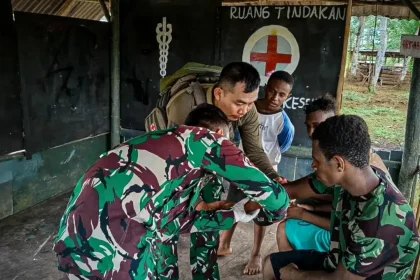 Papua,REDAKSI17.COM – Personel Satgas Yonif 403/Wirasada Pratista memberikan tindakan kesehatan kepada masyarakat yang mengalami luka di wilayah Papua. Kegiatan ini merupakan bentuk kepedulian d...