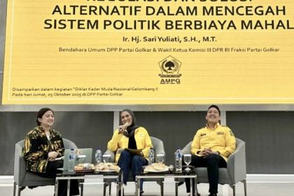 Bendahara Umum DPP Partai Golkar Sari Yuliati (tengah) saat berikan pemaparan dalam Diklat Kader Muda Nasional yang diselenggarakan oleh PP AMPG di Jakarta, (4/10). Jakarta,REDAKSI17.COM – Be...