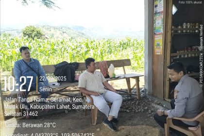 Lahat,REDAKSI17.COM – Pada hari Senin, 22 September 2025 sekira pukul 10.30 WIB, Polsek Mulak Ulu melaksanakan giat pengecekan kondisi tanaman jagung di Desa Geramat Kecamatan Mulak Ulu Kabupaten Laha...