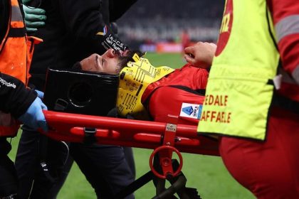 Loftus-Cheek ditandu keluar lapangan usai cedera patah rahang dalam laga melawan Parma. Foto: DeFodi Images via Getty Images/DeFodi Images Milan,REDAKSI17.COM – Gelandang AC Milan Ruben Loftus-C...