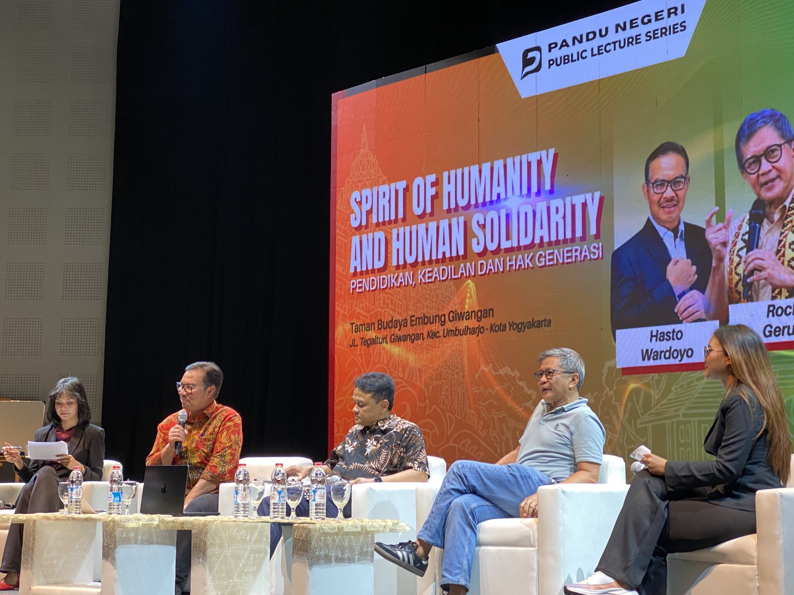 Dalam diskusi publik tersebut, selain Hasto Wardoyo, juga hadir dua narasumber lainnya, yakni Rocky Gerung, akademisi dan pengamat politik yang dikenal dengan perspektif kritis dan filosofis terhadap isu demokrasi dan hak asasi manusia.