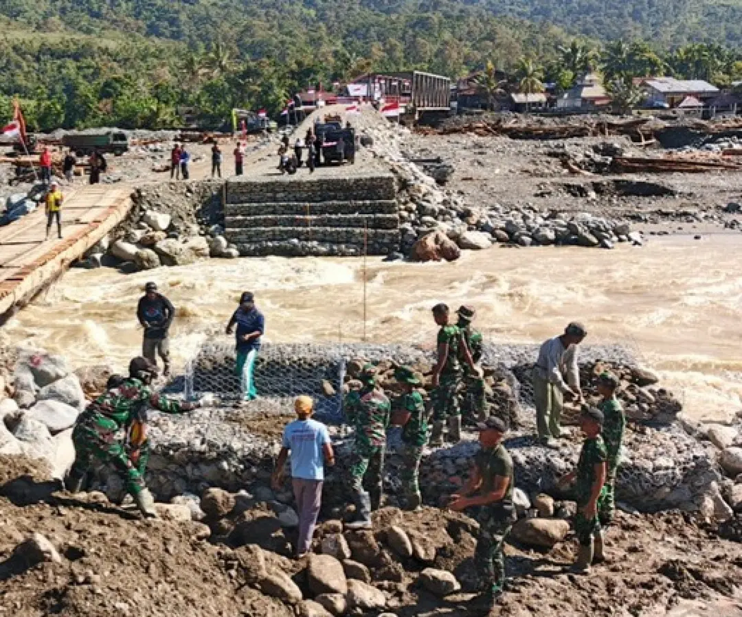 Untuk memastikan seluruh akses jalur darat di Provinsi Aceh dapat kembali terhubung, prajurit TNI di lapangan bekerja secara maksimal dengan mengebut pembangunan Jembatan Bailey di lokasi terdampak bencana. Pada tahap ini, fokus pekerjaan diarahkan pada pemasangan panel jembatan, gelagar lintang, penguatan struktur, serta pemasangan topang silang guna menjamin kekuatan dan keamanan jembatan sebelum digunakan oleh masyarakat.