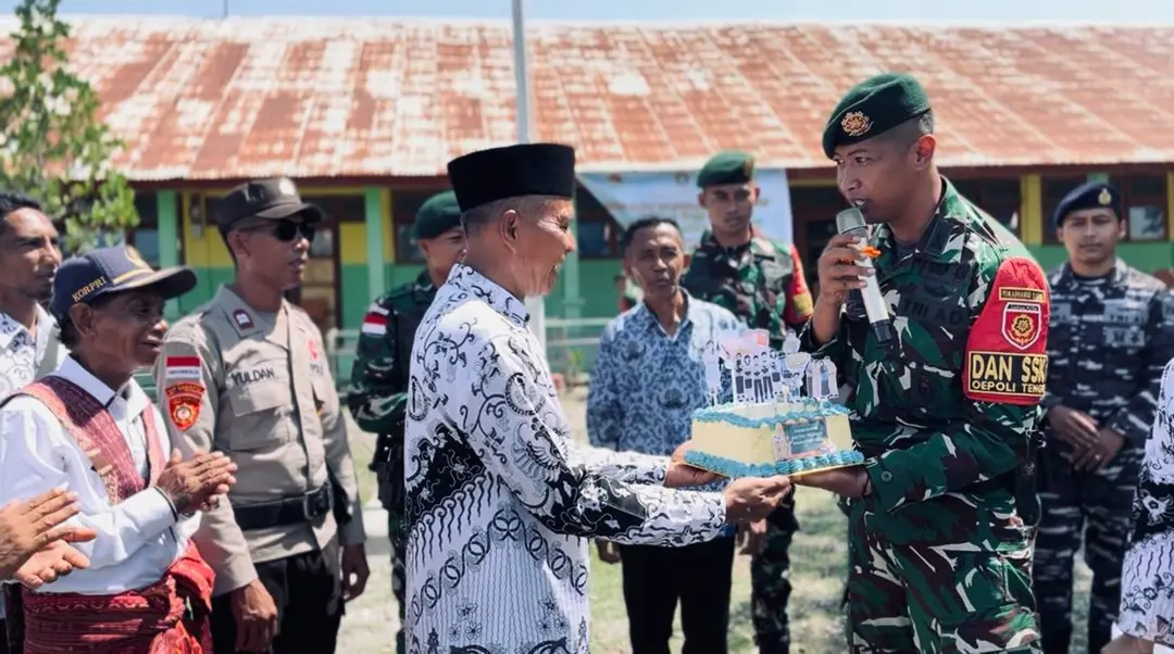 Kegiatan yang berlangsung khidmat namun meriah ini dipimpin langsung oleh Danki SSK 1, Kapten Arh Restu Anggara bersama Pos Oepoli Pantai, Tengah, dan Sungai. Kehadiran para prajurit penjaga perbatasan ini bukan untuk melakukan pengamanan militer, melainkan untuk memberikan penghormatan tertinggi kepada para “Pahlawan Tanpa Tanda Jasa.”