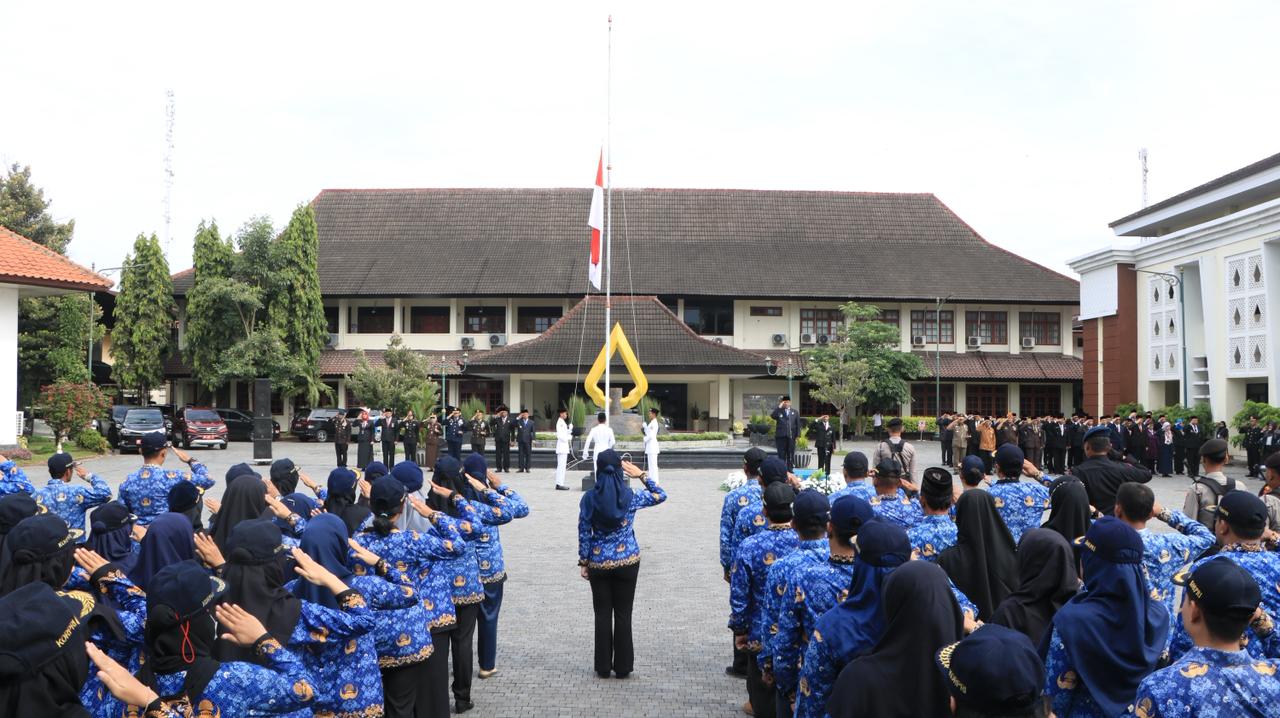 Bertindak selaku inspektur upacara Bupati Kulon Progo Agung Setyawan dan dihadiri oleh jajaran Forkopimda Kabupaten Kulon Progo,Kepala OPD,TNI/POLRI,Linmas dan Pelajar.