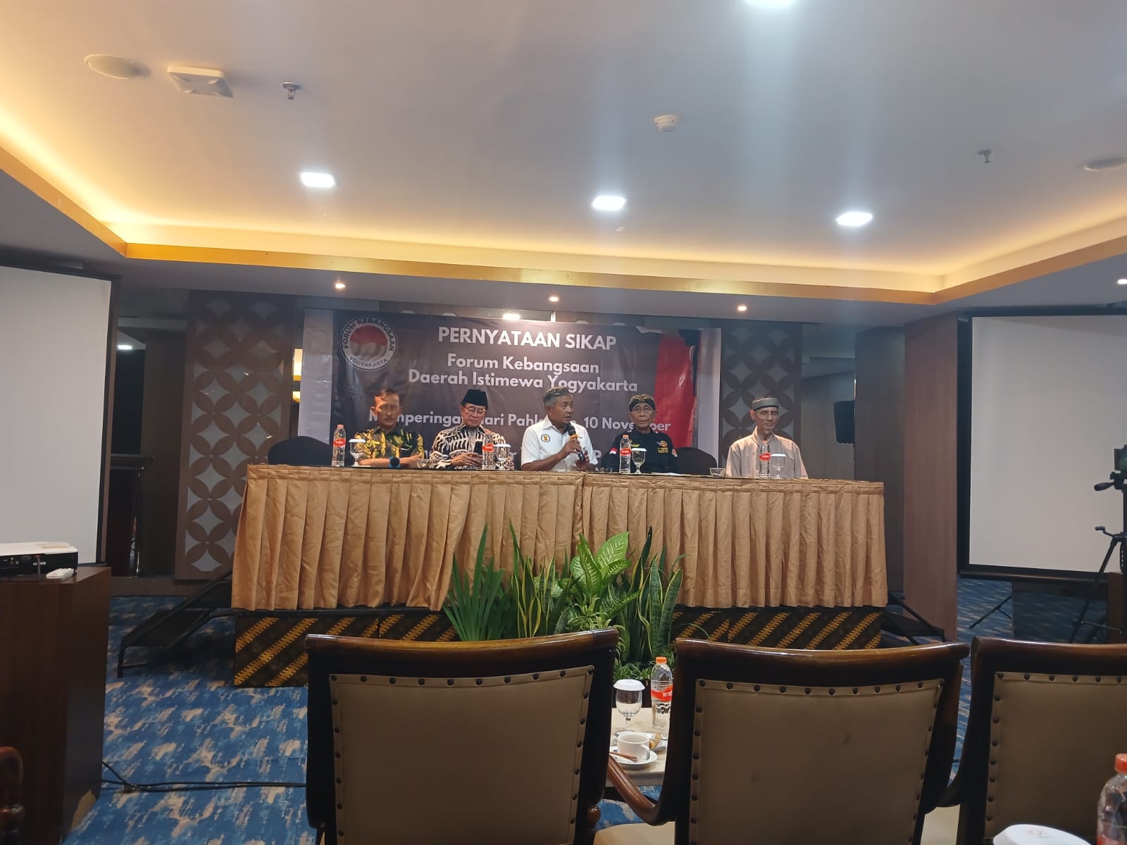 Yogyakarta,REDAKSI17.COM – Dari Yogyakarta kembali diserukan hukum yang berkeadilan dan meneladani nilai kepahlawanan,seruan tegas itu di sampaikan Forum Kebangsaan Daerah Istimewa Yogyakarta (FK DIY) yang  menggelar Pernyataan Sikap di Meeting Room 101 Urban Heritage Hotel, Jalan Jogokaryan 82, Yogyakarta, Senin (10/11/2025).