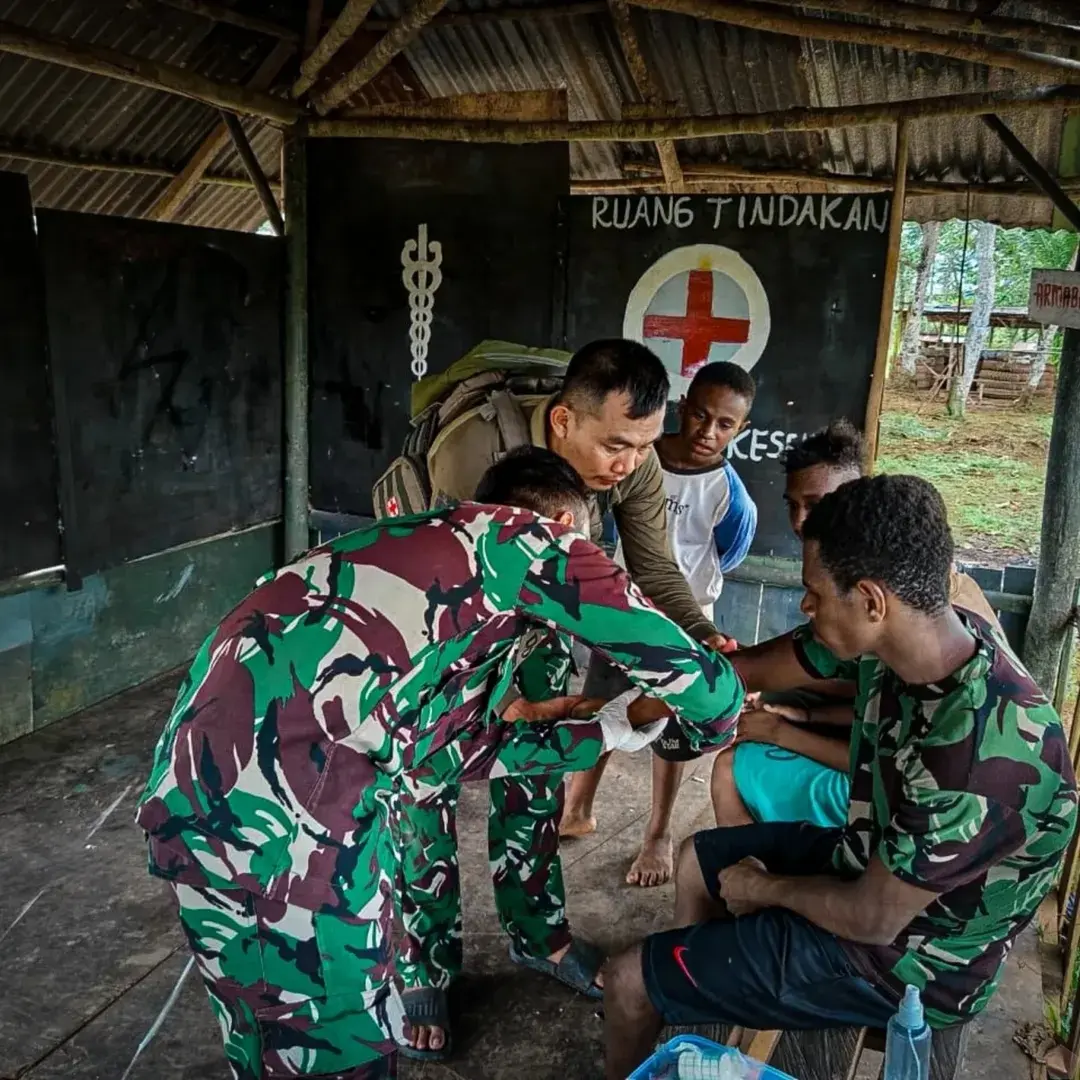 Personel Satgas Yonif 403/Wirasada Pratista Berikan Tindakan Kesehatan kepada Masyarakat di Papua