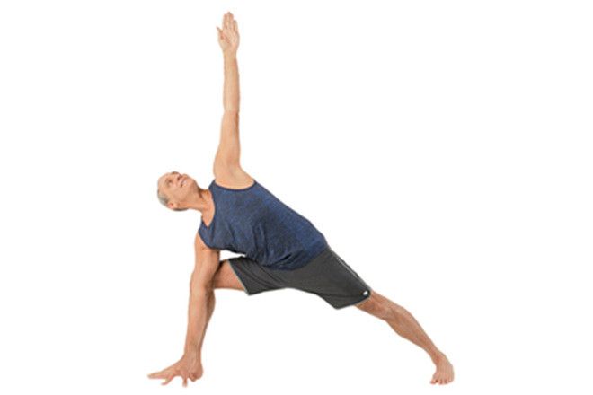 Tangan kanan bertumpu ke lantai, posisikan tungkai kanan di depan lalu tekuk dan posisikan tungkai kiri Anda lurus ke belakang. Tarik lengan kiri Anda ke atas. Arahkan kepala dan pandangan mata Anda ke arah tangan kiri tersebut. Pertahankan pose ini selama 30–60 detik. Anda dapat mengganti posisi tangan dan kaki sebaliknya.