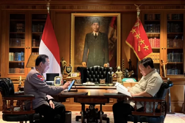 “Presiden Prabowo Subianto memanggil Kapolri Jenderal Polisi Listyo Sigit Prabowo di kediaman Hambalang, Jumat, 24 April 2026. Dalam pertemuan sekitar 1 jam tersebut dibahas beberapa hal terkait keamanan nasional dan kondisi umum situasi nasional di berbagai sektor strategis,” tulis akun Instagram resmi Sekretariat Kabinet.