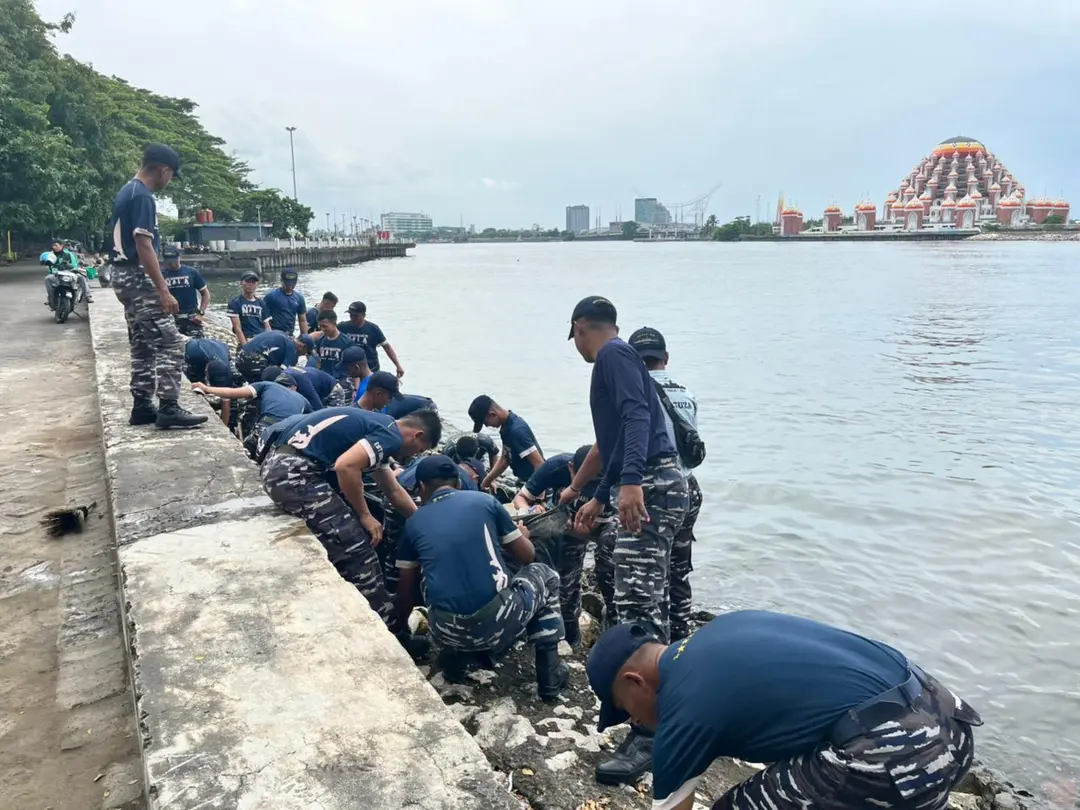 Prajurit KRI Nala-363 Bersihkan Pantai Losari, Wujud Nyata Dukungan TNI AL Pada Gerakan Indonesia ASRI