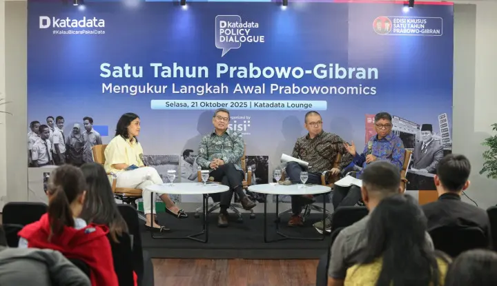 “Kami coba sesuaikan. Dan memang yang terjadi, apa yang sebetulnya [mesti] dibenahi, kami sangat mendambakan adanya kepastian dalam masalah yang berhubungan dengan kebijakan,” ujar Sanny dalam acara Katadata Policy Dialogue ‘Satu Tahun Prabowo-Gibran, Mengukur Langkah Awal Prabowonomics’, Selasa (21/10).