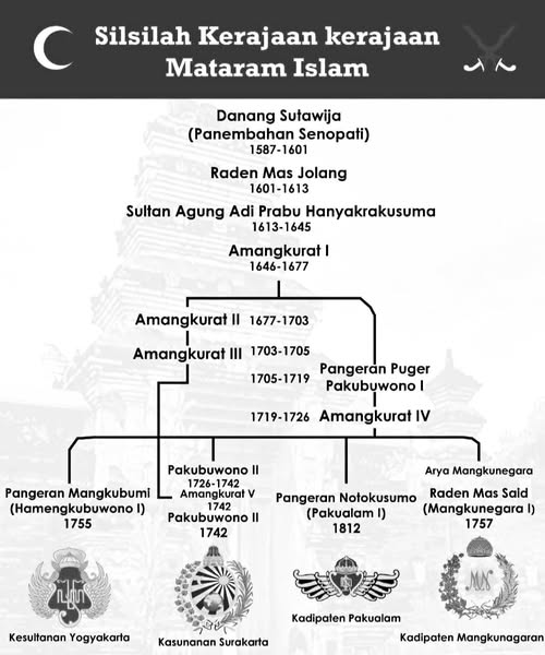 Keraton Surakarta dan Jogja dulunya merupakan satu Kerajaan Mataram Islam yang kemudian terpecah akibat perjanjian giyanti pada 13 februari 1755. Perpecahan tersebut dipicu oleh perebutan kekuasaan antara Mangkubumi dan Pakubuwono.