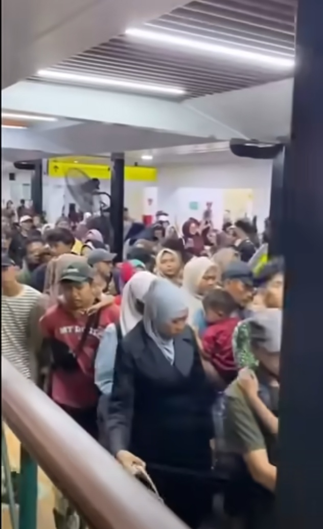 Beberapa titik di dalam stasiun, khususnya di dekat papan informasi jadwal dan area gate tapping, terlihat sangat rapat. Meski demikian, para penumpang tampak tertib mengikuti arahan petugas, walaupun pergerakan berjalan sangat lambat.