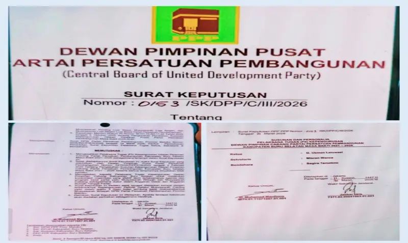 Informasi tersebut mengemuka seiring beredarnya Surat Keputusan DPP PPP Nomor 0153/SK/DPP/C/III/2026 yang juga telah diperoleh media ini. Dokumen tersebut tidak hanya memuat penunjukan Plt kepengurusan, tetapi juga menjadi bagian dari rangkaian konsolidasi internal partai di daerah.