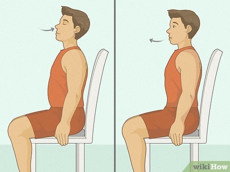 - Duduk tegak sambil merilekskan otot leher dan bahu.