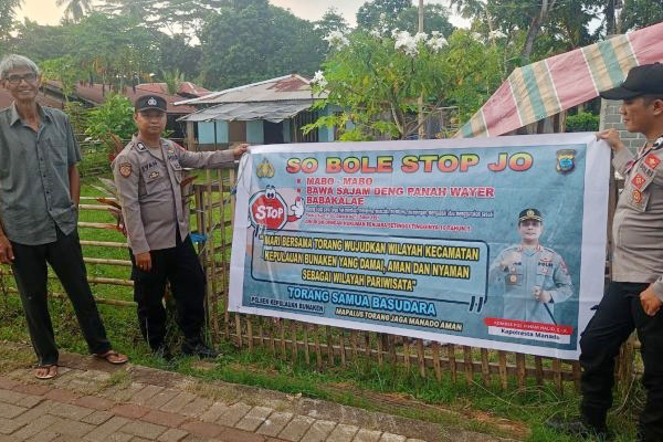 “Pemasangan spanduk ini merupakan bagian dari upaya Polri dalam memberikan edukasi dan imbauan kepada masyarakat agar senantiasa menjaga keamanan dan ketertiban lingkungan,” singkat Kapolsek Pulau Bunaken Iptu Eko Ferryanto.