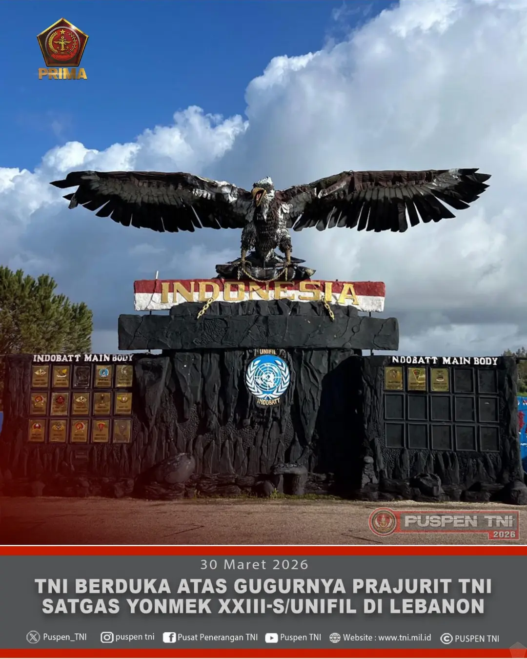 Jakarta,REDAKSI17.COM – Tentara Nasional Indonesia (TNI) menyampaikan rasa berduka mendalam atas gugurnya satu prajurit TNI serta korban luka yang terjadi karena adanya insiden di daerah penugasan _United Nations Interim Force in Lebanon_ (UNIFIL) akibat eskalasi situasi keamanan pada Minggu, 29 Maret 2026 di Lebanon Selatan.