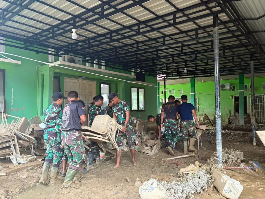 Sebanyak 23 personel Brigif 25/Siwah diterjunkan guna membantu memulihkan kondisi puskesmas yang terdampak banjir agar dapat kembali berfungsi secara optimal. Kegiatan pembersihan meliputi ruang pelayanan, ruang perawatan, halaman puskesmas, serta saluran air yang dipenuhi lumpur dan material sisa banjir.