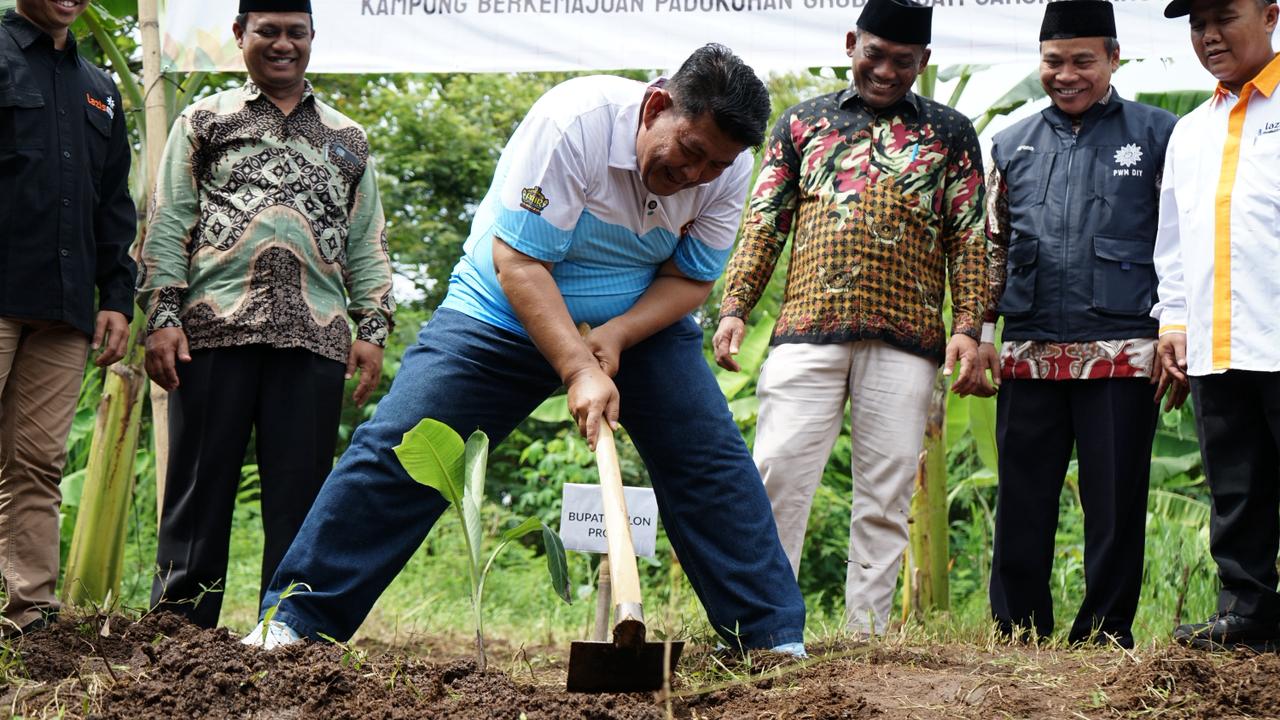 Lembaga Amil Zakat, Infaq, dan Shadaqah Muhammadiyah (LAZISMU) bersama Majelis Pemberdayaan Masyarakat Muhammadiyah (MPM) lakukan penanaman bibit pisang di Kampung Berkemajuan Padukuhan Grubug, Jatisarono, Nanggulan, Kulon Progo, Minggu (16/11/25).