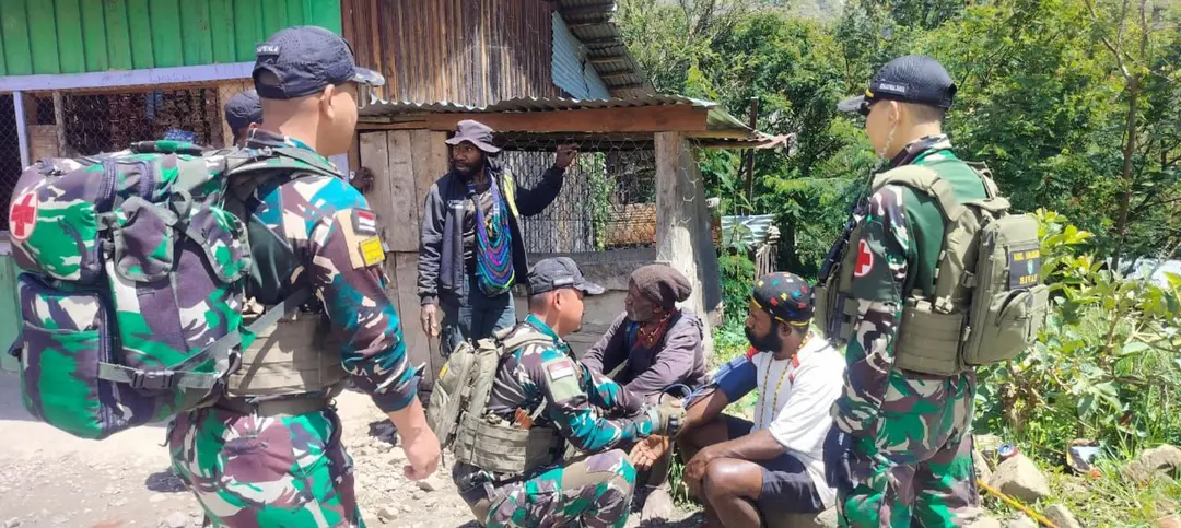 Wujud Kepedulian, Prajurit TNI Beri Layanan Kesehatan Gratis Keliling Di Puncak Jaya
