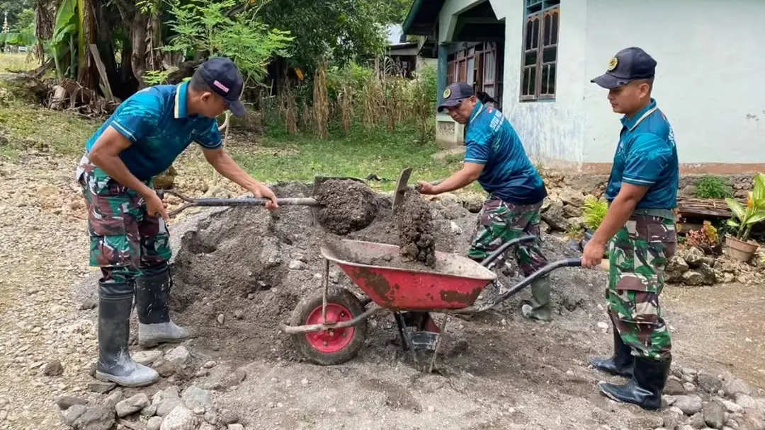Dalam pelaksanaannya, personel Satgas bersama warga bekerja bahu-membahu menyiapkan material, menyusun batu pondasi, dan melakukan penyemenan. Semangat gotong royong yang terjalin menciptakan suasana kerja yang solid sekaligus mempererat hubungan antara TNI dan masyarakat.