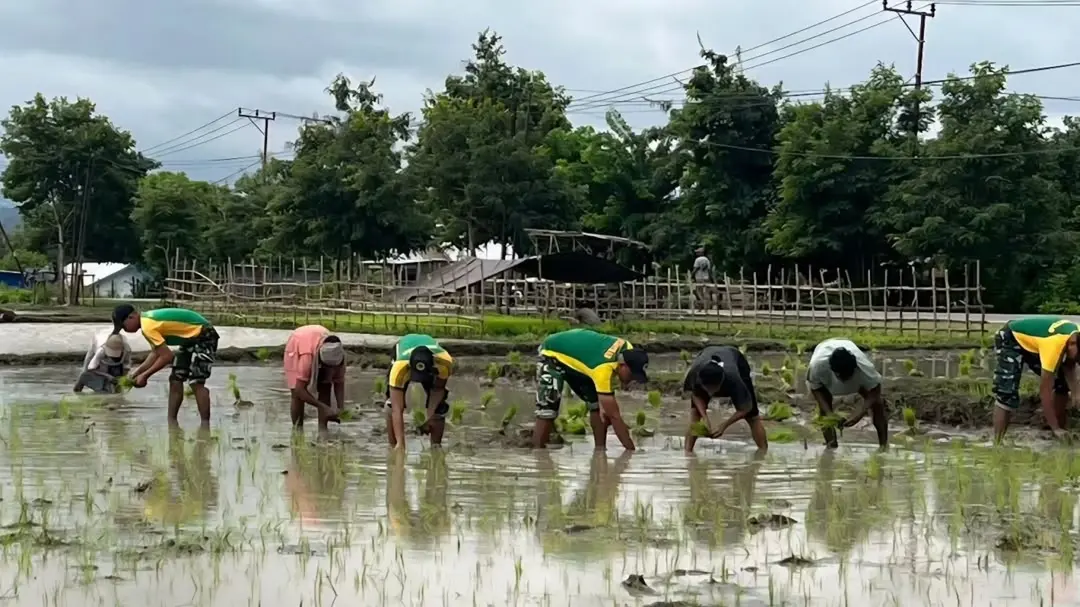 Yonarmed 12 Kostrad Hadir untuk Rakyat, Tanam Padi Bersama Warga Perbatasan